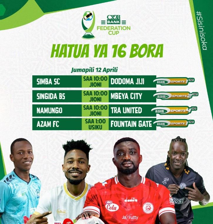 Ratiba Hatua ya 16 Bora CRDB Federation Cup 2026 Leo, Mashindano ya CRDB Bank Federation Cup yanaendelea kushika kasi huku ratiba ya hatua ya 16 bora ikitangazwa rasmi, ikijumuisha michezo kadhaa mikubwa inayotarajiwa kuvutia mashabiki wengi nchini.