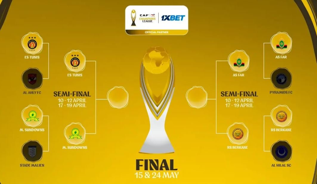 Ratiba ya CAF Ligi ya Mabingwa 2026 Nusu fainali, Katika Ligi ya Mabingwa ya TotalEnergies CAF, Espérance Sportive de Tunis ya Tunisia itakuwa mwenyeji wa Mamelodi Sundowns ya Afrika Kusini huko Rades, mchezo wa kwanza wa Nusu Fainali siku ya Jumapili, Aprili 12 saa 19:00 GMT.